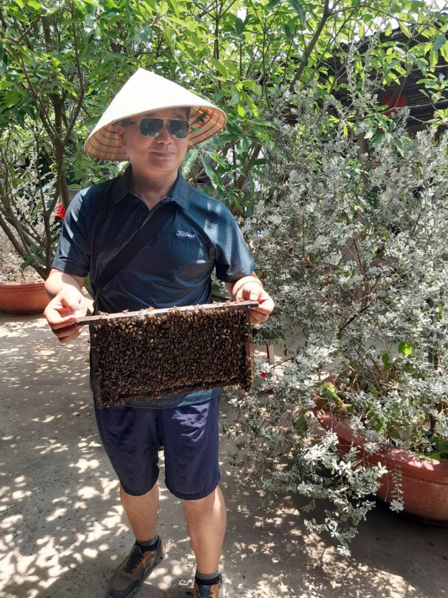 Đến thăm cồn Lân, du khách sẽ được mời nếm thử mật ong (ong ở đây chủ yếu chắt mật từ hoa nhãn nên cho mật có vị đậm đà riêng) cùng với nước trà và kẹo mứt.