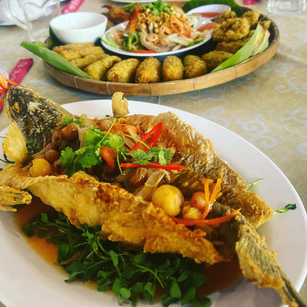 Bến Tre là vùng đất trù phú được thiên nhiên ưu đãi với khí hậu ôn hòa quanh năm cùng hệ thống sông ngòi chằng chịt trĩu nặng phù sa. Với những vườn cây ăn trái sum suê, những vườn dừa bạt ngàn xanh mát, Bến Tre đã thu hút đông đảo du khách đến trải nghiệm loại hình du lịch sinh thái, miệt vườn sông nước mang đậm cái tình của bà con nơi đây. Trong đó Cồn Phụng, là một trong những điểm du lịch Bến Tre nổi tiếng nhất. Cồn Phụng – Bến Tre Cồn Phụng còn được gọi với cái tên cồn Tân Vinh là một cù lao nổi giữa sông Tiền thuộc xã Tân Thạch, huyện Châu Thành, tỉnh Bến Tre . Cồn Phụng nằm trong quần thể tứ linh (Long, Lân, Quy, Phụng). Trong đó, cồn Quy và cồn Phụng thuộc địa phận tỉnh Bến Tre, còn cồn Long và cồn Lân là thuộc tỉnh Tiền Giang. Ở một số vùng miền của Việt Nam, thường ở Nam Bộ, người ta dùng khái niệm cồn hoặc cù lao để chỉ bãi giữa, là một dải đất hình thành ở giữa con sông lớn nhờ quá trình bồi đắp phù sa lâu năm. Vị trí Cồn Phụng trong cồn Tứ Linh trên bản đồ Cồn Phụng lúc đầu chỉ là một cù lao nổi giữa sông Tiền vào những năm 1930 với diện tích khoảng 28 ha, nhưng do lượng phù sa bồi đắp dồi dào mỗi năm mà nay đã lên tới trên 50 ha. Tên Cồn Phụng có từ khi ông Nguyễn Thành Nam đến đây xây dựng chùa Nam Quốc Phật vào hồi đầu thế kỉ XX. Khi công trình này đang xây dựng, những người thợ nhặt được một cái chén cổ có hình con chim Phụng, nên đặt tên là Cồn Phụng. Ngoài ra, sở dĩ nó còn có tên gọi khác là cù lao Đạo Dừa là do ông Nguyễn Thành Nam khi đến đây xây chùa Nam Quốc Phật, đã thành lập nên một giáo phái gọi là Đạo Dừa. Đạo Dừa chủ trương mang lại hòa bình, sống bằng hoa trái. Cồn Phụng nhìn từ trên cao Khoảng cách di chuyển từ TP Hồ Chí Minh đến Bến Tre sẽ mất khoảng 1,5-2 tiếng đồng hồ. Bạn di chuyển qua cầu Rạch Miễu, rẽ trái sẽ có đường ven sông, ở đây có một bến phà chở bạn ra Cồn Phụng. Nếu không bạn có thể đến bến tàu ở Mỹ Tho, rồi tùy vào số người mà thuê tàu thuyền để đi Cồn Phụng. Một trong những điểm du lịch tiêu biểu của đồng bằng Sông Cửu Long Với phong cảnh sông nước hữu tình, miệt vườn trù phú cùng nhiều hoạt động và dịch vụ hấp dẫn, hằng năm Cồn Phụng đón tiếp hàng nghìn lượt du khách đến khám phá và trải nghiệm. Khi nhắc đến Cồn Phụng – Bến Tre, không thể không nhắc đến công trình kiến trúc Đạo Dừa gắn với giai thoại của giáo chủ Đạo Dừa Nguyễn Thành Nam. Công trình kiến trúc gắn với Đạo Dừa Nơi đây có nhiều kiến trúc độc đáo vẫn còn lưu giữ như: sân Chín Rồng, tháp Hòa Bình, phòng truyền thống giới thiệu về đất và người Bến Tre… Trải qua 50 năm xây dựng, khu di tích vẫn giữ nguyên được nét đẹp nguyên bản của nó. Sân chín rồng Đi sâu bên trong, du khách được bước vào “mê cung dừa”, có cơ hội được hiểu thêm về con người, cuộc sống và văn hóa xứ dừa tại Bảo tàng Dừa, là một ngôi nhà được làm hoàn toàn từ thân cây dừa. Bảo tàng Dừa Dừa hiện diện trong chiến tranh, kinh tế, văn hóa, ẩm thực… để làm nên dáng đứng Bến Tre. Phải trầm trồ, tấm tắc, thán phục sự tài tình của nghệ nhân. Từ những khúc gỗ dừa vô tri vô giác, các nghệ nhân đã sáng tạo để cho ra đời hàng trăm sản phẩm thủ công mỹ nghệ tinh xảo, bắt mắt và mang đậm giá trị nghệ thuật. Đến đây, du khách sẽ phải “rinh” về một món nào đó làm quà cho người thân để nhớ đến Bến Tre. Những sản phẩm làm từ cây dừa Du lịch Bến Tre, đến với Cồn Phụng khách tham quan còn được chứng kiến toàn bộ quá trình để làm nên những viên kẹo dừa vô cùng thơm ngon và đậm vị miền Tây Nam Bộ này: Từ khâu pha chế, nấu kẹo, cắt kẹo, đóng gói đều được làm nên từ trái tim và tình yêu của những người dân nơi đây. Và chắc chắn ai đến những xưởng làm kẹo dừa này cũng xách cho mình vài túi quà ngọt ngào đến từ vùng đất Cồn Phụng này rồi! Xưởng làm kẹo dừa Cồn Phụng như một làng quê miền Tây thu nhỏ của Đồng bằng sông Cửu Long. Du khách có thể khám phá và tìm hiểu nhiều nét độc đáo về văn hoá, tập tục trong đời sống dân dã của người dân xứ dừa Bến Tre. Nhiều gia đình vẫn giữ nếp sống chủ yếu bằng nghề nuôi ong lấy mật từ hoa nhãn và một số loài hoa khác. Tìm hiểu nghề nuôi mật ong của người dân Các loại trái cây và trà mật ong tươi ngon Khung cảnh tại Cồn Phụng rất yên bình, nên thơ và còn gì tuyệt vời hơn khi du khách được trải nghiệm đi tàu trên sông, tản bộ trên đường làng rợp bóng dừa của huyện Châu Thành – Bến Tre; đi xe ngựa, uống trà mật ong, thưởng thức các món ăn trái cây miền nhiệt đới, nghe đờn ca tài tử, đặc biệt được trải nghiệm chèo xuồng len lỏi trong những con rạch nhỏ mà hai bên toàn là cây dừa nước và những cây bần đong đưa bông trắng đầy 