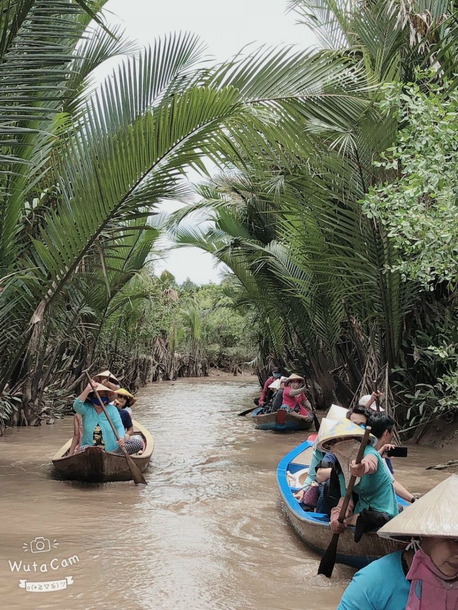 6. Sau đó đi xuồng chèo len lỏi trong con rạch nhỏ khám phá hai hàng dừa nước thiên nhiên và tận hưởng bầu không khí trong lành của miệt vườn.
