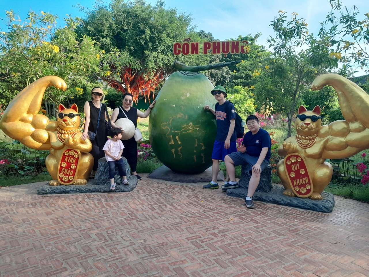 9.Thuyền lớn tiếp tục chở Quý khách đến thăm Thánh địa Đạo Dừa, khu du lịch nổi tiếng của Bến Tre (Cồn Phụng), bảo tàng nhà dừa, trại nuôi cá sấu, cá bú bình sữa, cá massage chân khu trò chơi vận động (chạy xe đạp vượt sông, đu dây, chèo xuồng,.) Ăn Trưa (nếu có)